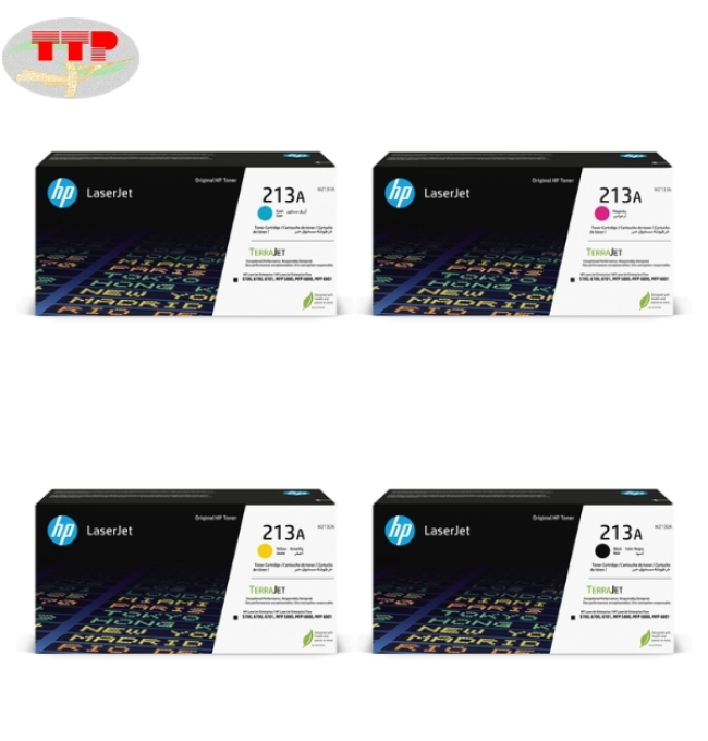 Hộp mực 213A là dòng mực laser màu với 4 màu cơ bản CMYK gồm: đen, xanh, vàng và hồng. Cụ thể, W2130A (đen) cho chữ rõ nét, W2131A (xanh) tươi sáng, W2132A (vàng) nổi bật và W2133A (hồng) chuẩn màu. Mỗi màu được thiết kế thành một hộp riêng, giúp người dùng dễ thay thế và quản lý.