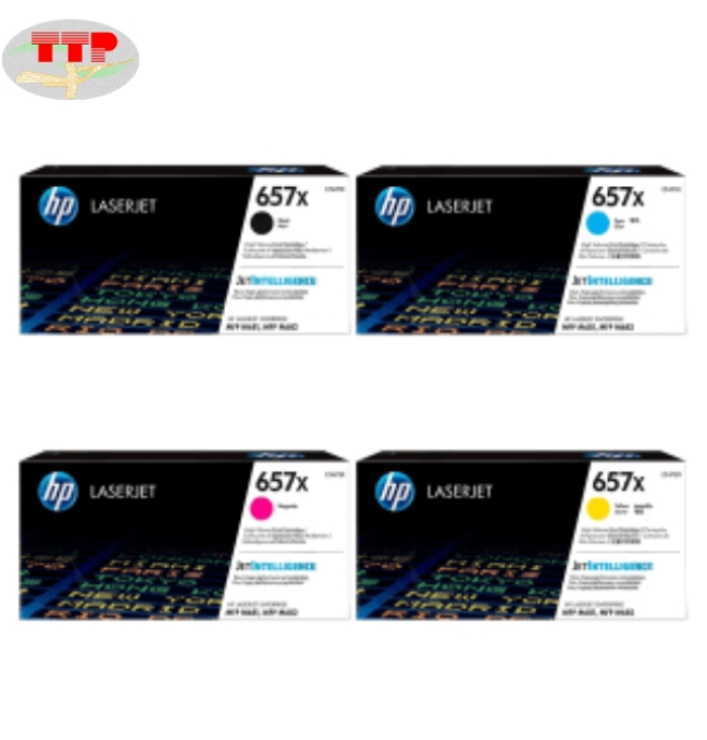 Hộp mực HP 657X là bộ mực in laser màu CMYK, bao gồm 4 màu cơ bản: Cyan (xanh), Magenta (hồng), Yellow (vàng) và Black (đen). Hộp mực 657X được sử dụng cho hai dòng máy in HP Color LaserJet Enterprise MFP M681 và M862, với dung lượng in lên đến 23000 trang màu và 28000 trang đen (với độ phủ 5%), đáp ứng nhu cầu in ấn lớn của người dùng.