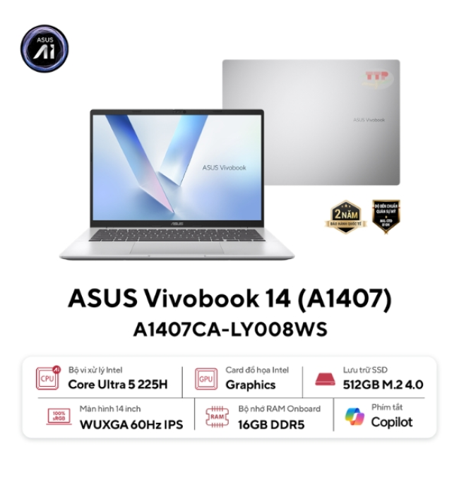 Giới thiệu Asus Vivobook A1407CA-LY008WS (Intel Ultra 5 225H, 16GB, 512GB)