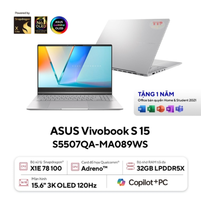 Thông số kỹ thuật laptop ASUS Vivobook S 15 OLED S5507QA-MA089WS Snapdragon X1E