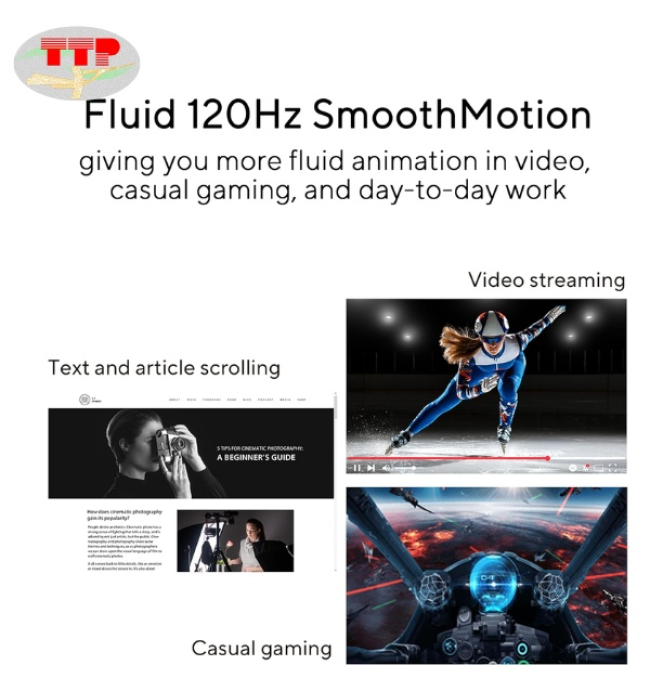 Tần số quét tối đa của màn hình Asus VA279HG 27 inch lên đến 120Hz, nâng cao sự mượt mà khi hình ảnh được chuyển động, đặc biệt khi cuộn trang, xem video tốc độ cao hoặc chơi game giải trí nhẹ. Cùng với đó, màn hình văn phòng Asus VA279HG có thời gian phản hồi 1ms hỗ trợ giảm hiện tượng nhòe chuyển động, cho hình ảnh rõ ràng hơn trong các lần chuyển cảnh nhanh.