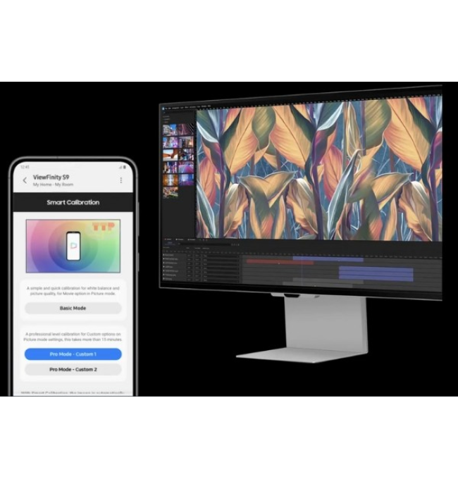 Màn hình máy tính Samsung LS27C900PAEXXV thuộc dòng ViewFinity S9 cao cấp, được thiết kế dành riêng cho người dùng chuyên nghiệp. Tính năng Smart Calibration độc đáo giúp bạn hiệu chuẩn màu sắc một cách dễ dàng. Thay vì phải sử dụng các thiết bị phức tạp, giờ đây bạn có thể tinh chỉnh các thông số như DCI-P3, sRGB, nhiệt độ màu và gamma ngay trên điện thoại thông minh, giúp tiết kiệm thời gian và đảm bảo độ chính xác màu sắc tuyệt đối.