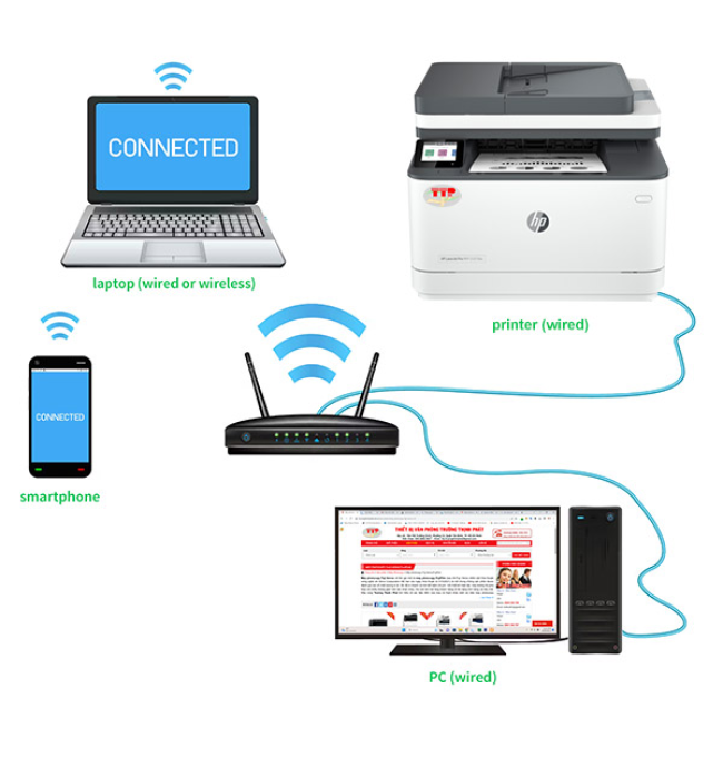 Hơn nữa, máy in đa chức năng HP LaserJet Pro MFP 3103fdn còn hỗ trợ kết nối qua mạng Lan có dây giúp bạn kết nối dễ dàng và tiện lợi hơn. Bạn cũng có thể dễ dàng in ấn từ chiếc điện thoại di động với các ứng dụng có sẵn Apple AirPrint™; HP ePrint; HP Smart App; Mobile Apps; Mopria™ Certified hỗ trợ trên có 2 hệ điều hành Android và IOS.