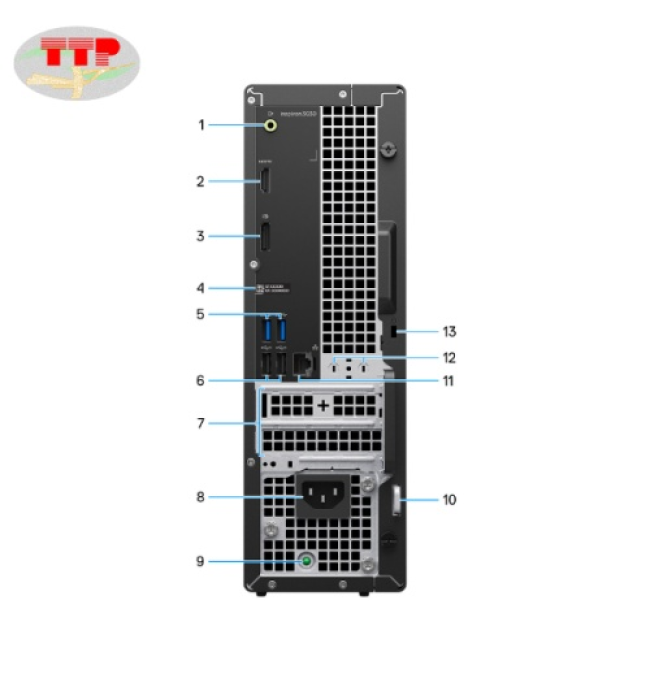 Trong khi đó, mặt sau của PC Dell Ins 3030 42IN3030S14700 có đa dạng kiểu kết nối hơn, vừa có thể truyền tải được hình ảnh, dữ liệu và cả âm thanh. Không chỉ có các cổng phổ biến hiện đại mà còn có cổng đời cũ, hỗ trợ tương thích với các thiết bị quen thuộc của người dùng. Mặt sau gồm 2 cổng USB 2.0 Type-A, 2 cổng USB 3.2 gen 1 Type-A, 1 cổng đầu ra âm thanh, 1 cổng DisplayPort 1.4, 1 cổng mạng LAN và 1 cổng HDMI 1.4b linh hoạt kết nối.